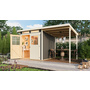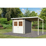 KARIBU Gerätehaus Glücksburg 3 im Set mit Anbaudach terragrau